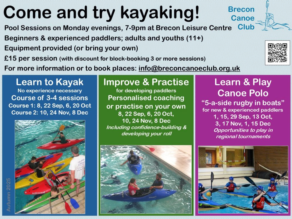 The cost of each session will be £15 but we are able to offer a discounted rate of £50 if you ‘block-book’ all 4 sessions in advance (no refunds for missed sessions) – and all ‘existing’ paddlers will need to be paid-up members of the Club and of Canoe Wales (and signed-up to our Club Code of Conduct). Priority spaces will be given to block-bookings. NB this discounted rate will make it difficult for us to cover our costs, so we will also continue to invite optional donations, for those that feel able to contribute a little extra…
